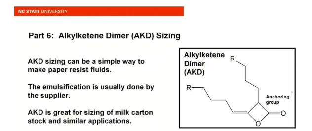 Compared to another commonly used sizing agent, ASA (alkenyl succinic anhydride), AKD has lower chem...